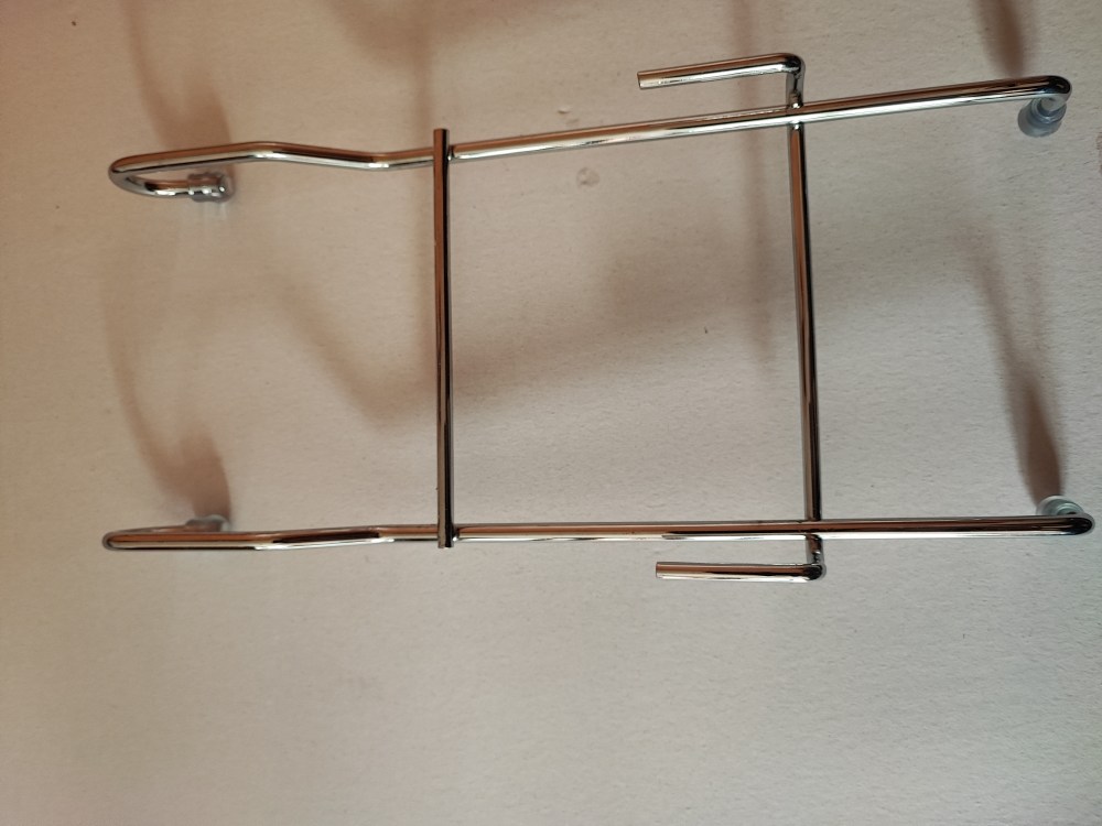 Держатель для полки на релинг одноярусный хромированный. Может быть укомплектована полками на релинг сектор хромированными 22*22 см (304-112) или 18*18 см (304-110). Размер: выс. 30 см, шир. 14,5 см.