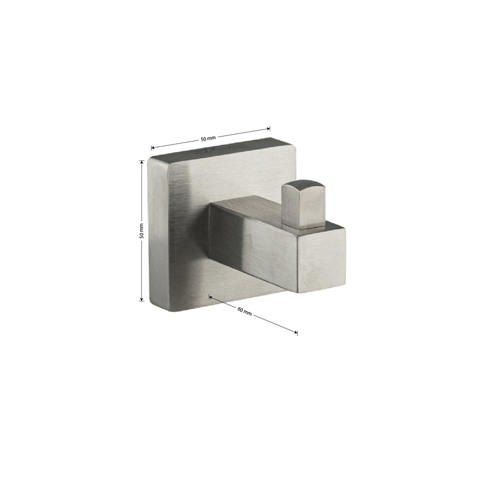 Крючок одинарный для полотенец металлический, с квадратным основанием с матовым покрытием. Материал изготовления - ЦАМ. Изделие крепится к стене с помощью дюбелей и саморезов (входят в комплект). Габаритные размеры: ширина 50 мм, глубина 60 мм, высота 50 мм.
