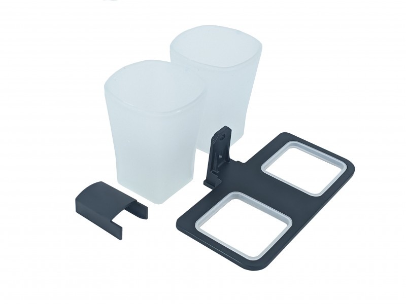 Стакан двойной настенный со стеклом матовым, цвет графит. Производство: Китай