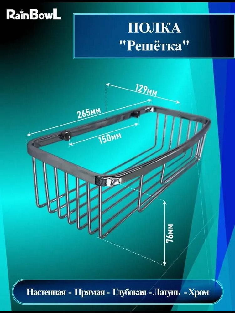 Полка металлическая настенная хромированная. Материал: латунь. Размеры Ш.26,5, Г.12,9, В.7,6 см