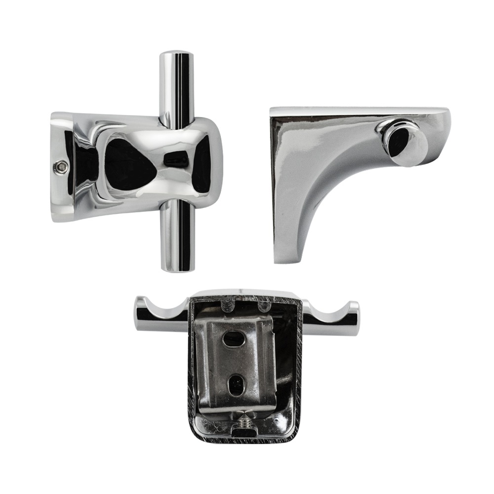 Крючок двойной для полотенец, металлический, хромированный. Материал изготовления — ЦАМ (цинк-алюминий-медь) + нержавеющая сталь. Хромированное покрытие очень стойко переносит истирания и обеспечивает зеркальный блеск изделия. На крючке с легкостью можно размещать вещи для сушки или вешать, как полотенца, так и одежду перед походом в душ. Идеально подойдет не только для ванной, но и для кухни, а также для дачи или гаража, при необходимости на держатель можно вешать любые предметы. Изделие крепится к стене с помощью дюбелей и саморезов (входят в комплект). Габаритные размеры: ширина 75 мм, высота 45 мм, глубина 55 мм