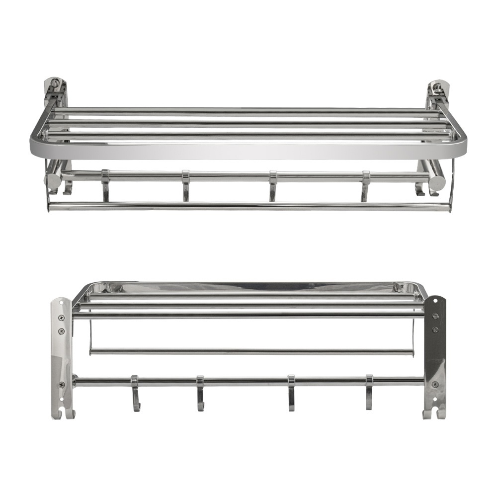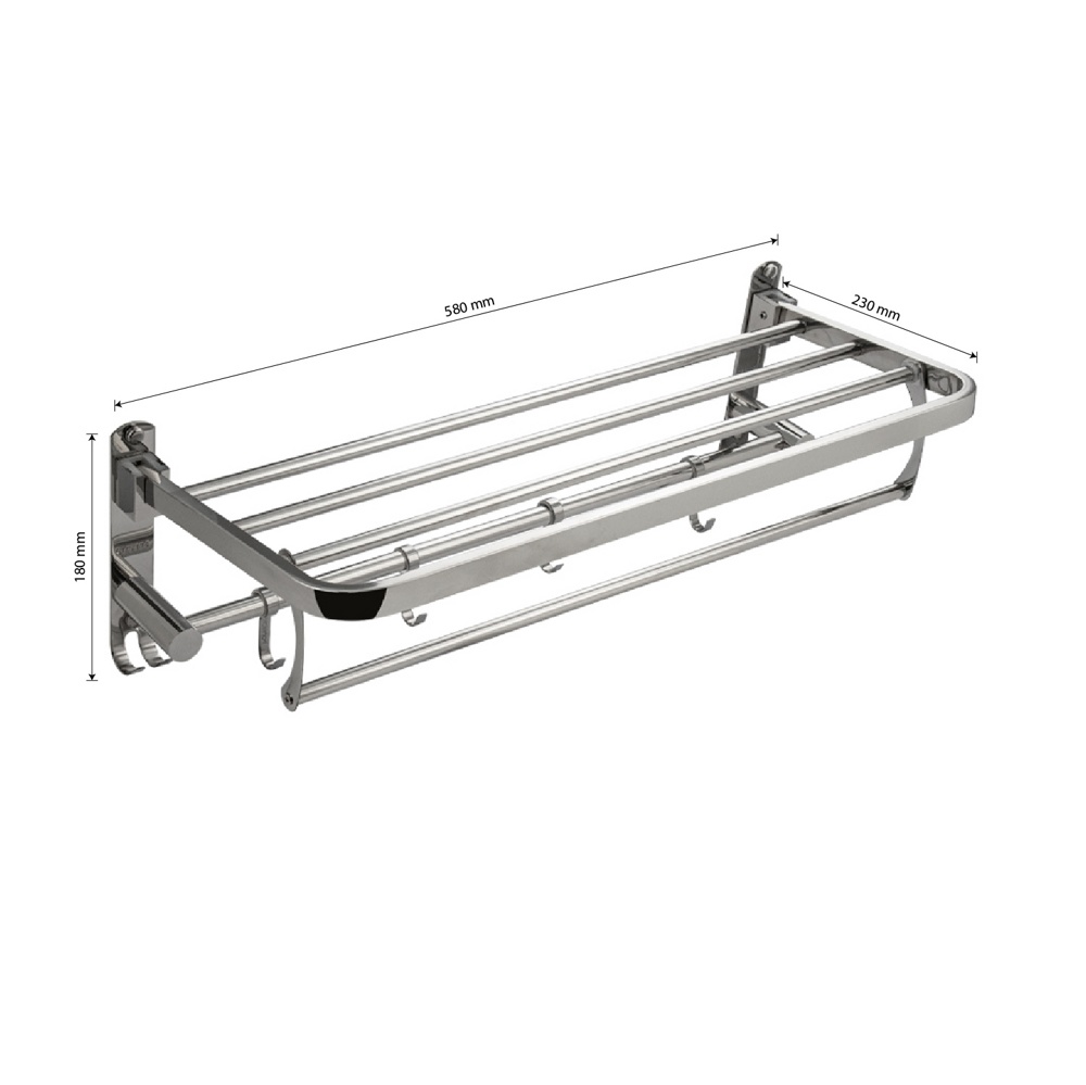 Полка для полотенец с крючками складная хромированная САНАКС 1056