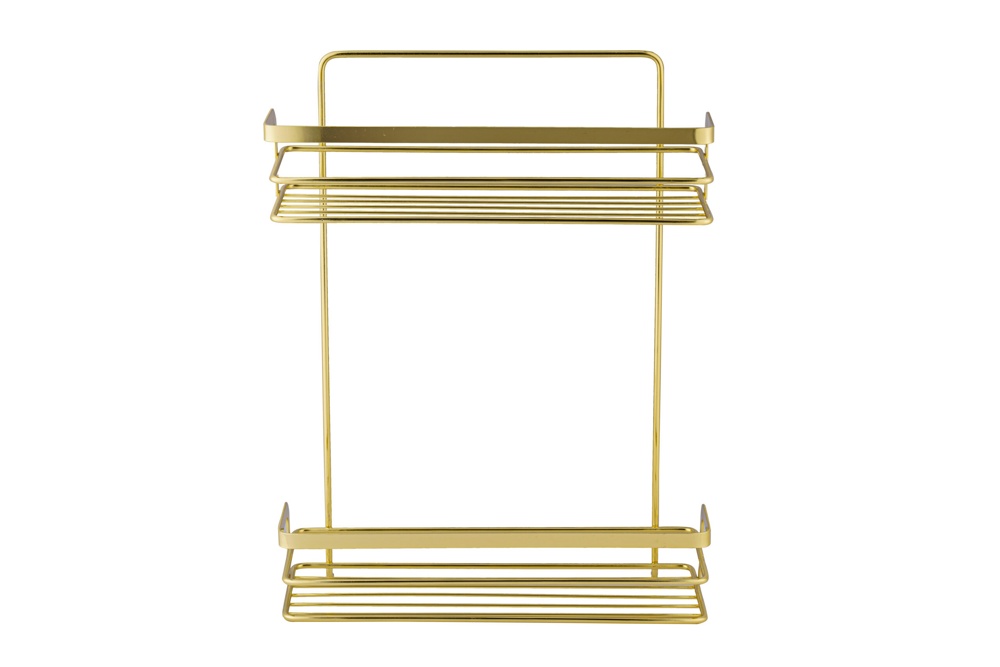 Полочка прямоугольная металлическая 2-х ярусная золотая. Артикул: 05772. Производитель: Bisk, Польша. Размеры 265*342* 103 мм