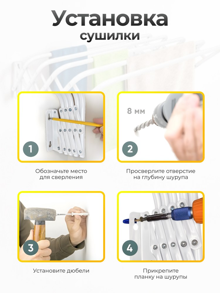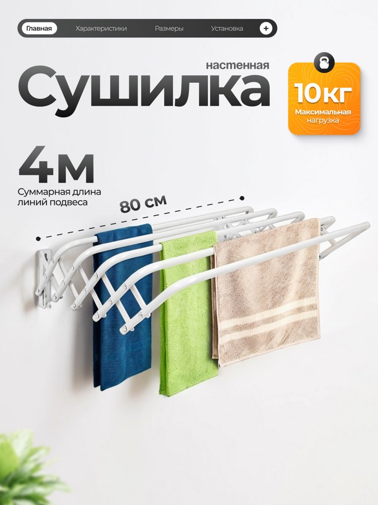 Сушилка для белья настенная раздвижная.Материал: сталь с полимерным порошковым покрытием. Цвет: белый. Установка: настенная. Рабочая поверхность: 4 м. Размер: 80*45 см. Размер в сложенном виде (ДхШхВ): 80*9,5*19 см Максимальная нагрузка: 10 кг. Вес изделия 1,1 кг. Производитель: Joy Home, Китай
