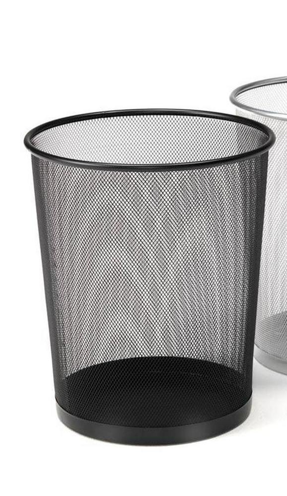 Офисное сетчатое ведро без крышки. Материал: металлическая сетка. Цвет серый, черный. Высота 27 см, d вверху 26, внизу 21 см.