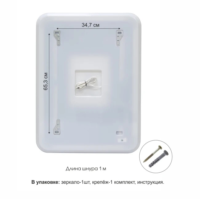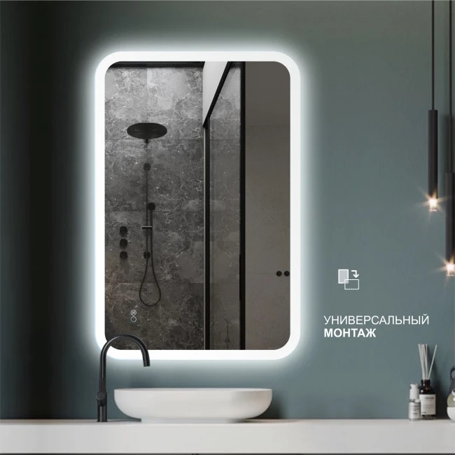 Материал стекло (AGS Glass Europe 4 мм), пластик, алюминий.Оснащено светопропускающим коробом, который мягко рассеивает свет, создавая приятную атмосферу, акцентируя внимание на зеркале и делая его парящим. При этом конструкция короба имеет скошенный край и утоплена под зеркальное полотно, что делает его максимально незаметным. Особенностью данной линейки зеркал является широкий (30 мм) пескоструйный рисунок в край зеркала по всему периметру, который добавляет арктический шарм и придаёт изделию изысканный вид. Свет, проходя через текстурированную поверхность, создаёт эффект холодного сияния, напоминая о зимних пейзажах. Гарантия 24 месяца. Производство: РБ