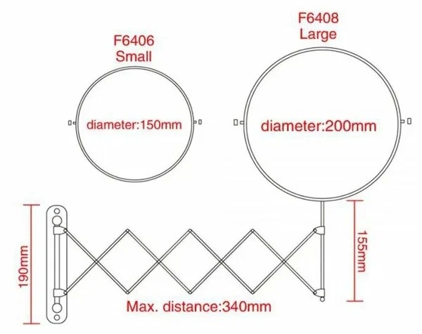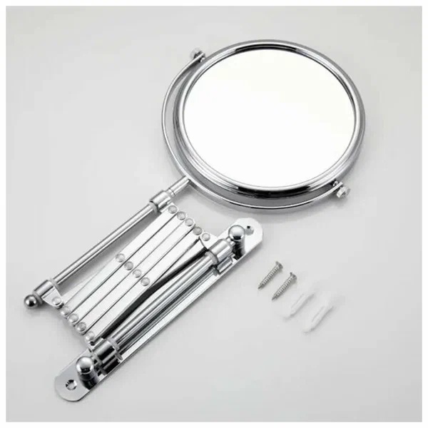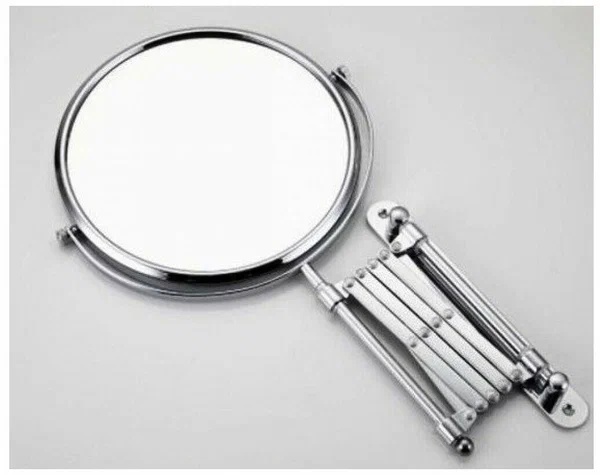 Зеркало двустороннее, с одной стороны увеличивающее. Диаметр 15 см. Материал: нержавеющая сталь хромированная. Торговая марка: FRAP. Производство: Китай
