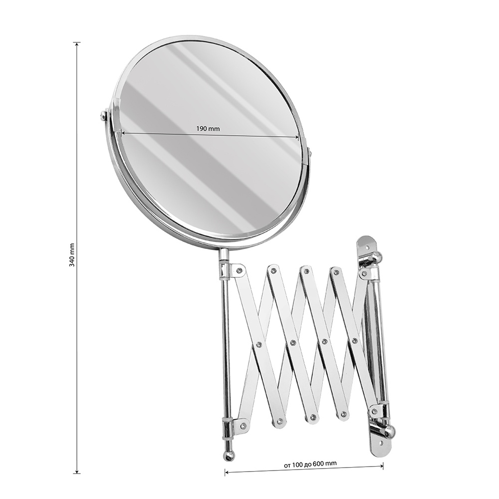 Зеркало косметическое настенное большое, гармошка, нержавейка хромированная САНАКС 75269-1