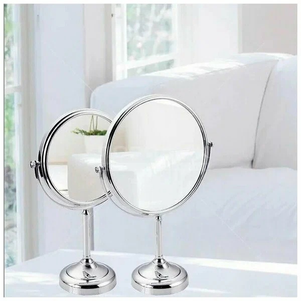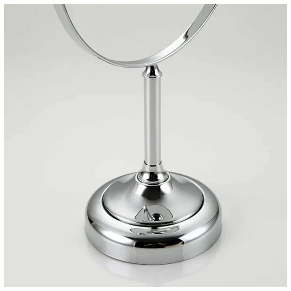 Зеркало косметическое настольное двустороннее, с одной стороны увеличивающее. Диаметр: 16 см. Материал: нержавеющая сталь хромированная. Аккуратное и деликатное в исполнении. Производство: Китай
