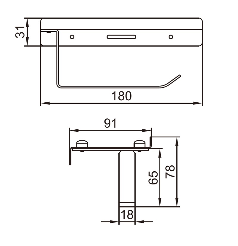 Держатель туалетной бумаги из нержавеющей стали сатин, антивандальный, с полкой под мобильного телефоа, ключей.Размеры ширина 180 мм, высота 78 мм, глубина 91,5 мм. Производство: Китай