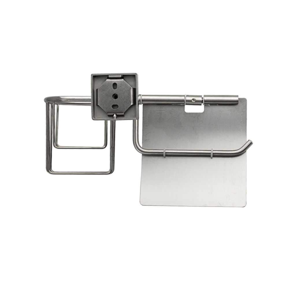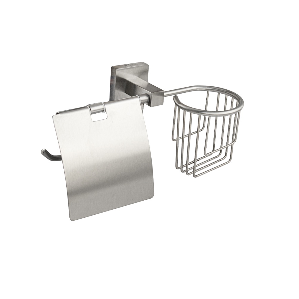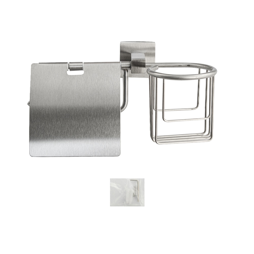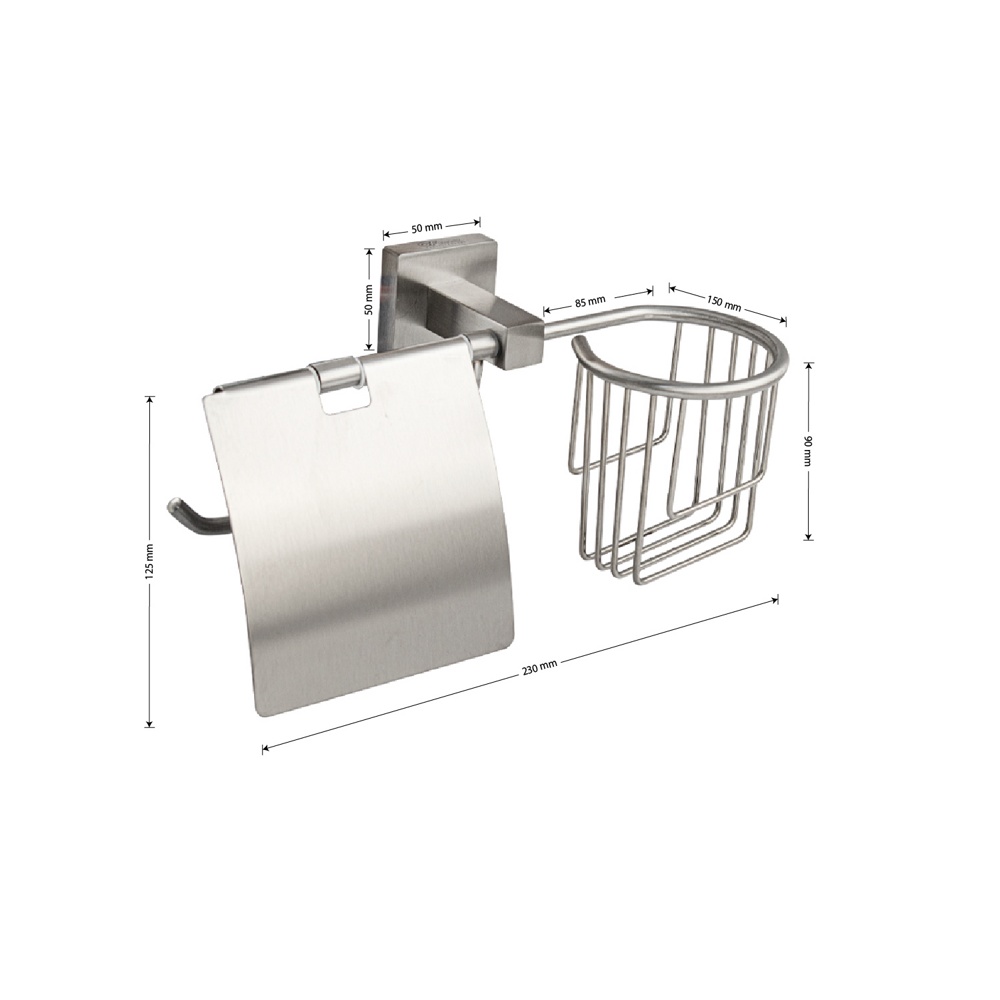 Держатель освежителя воздуха и туалетной бумаги с крышкой, металлический. Изготовлен из прочной нержавеющей стали марки SUS 304 с матовым покрытием. Удобно чистить и легко менять рулоны и аэрозоли. Размеры: ширина 230 мм, высота 125 мм, основание 55*55 мм, глубина 150 мм. Производитель Китай