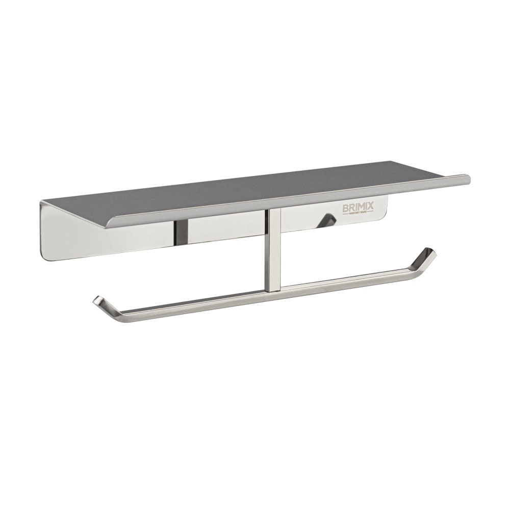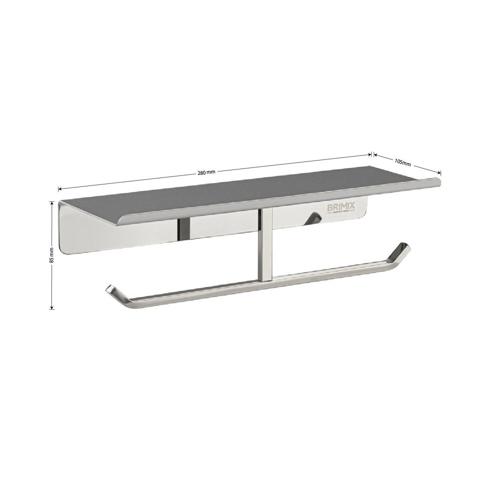 Держатель туалетной бумаги из нержавеющей стали хром, антивандальный, с полочкой под мобильный телефон, ключи. Размер 28,0х8,5х10,5 см. Производство: Китай
