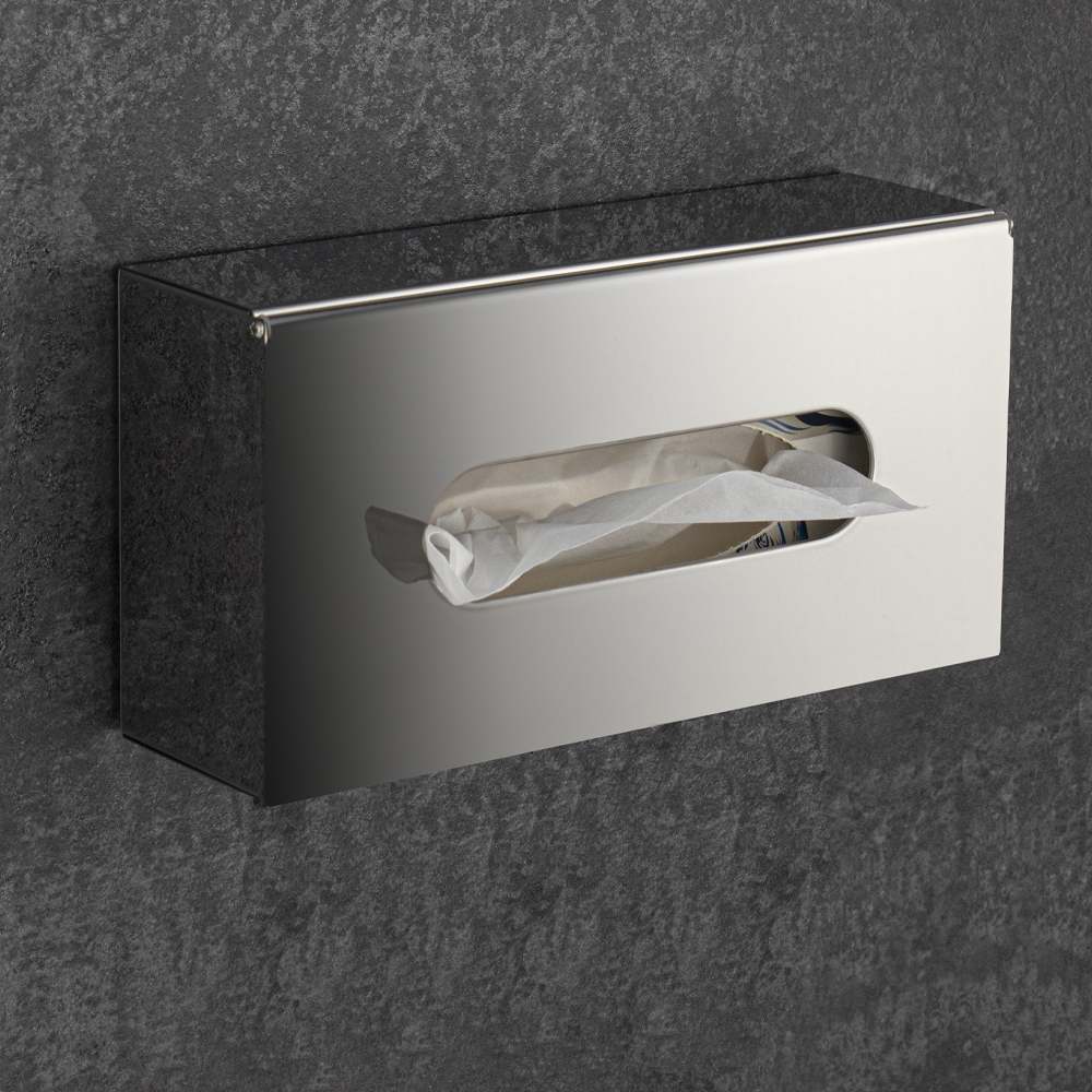 Диспенсер для салфеток и бумажных полотенец, из нержавеющей стали, хромированный. Универсальный (настенный/настольный). Прямоугольной формы, компактный, вместительный и надежный. Привлекательный дизайн подойдет для самых разных интерьеров.