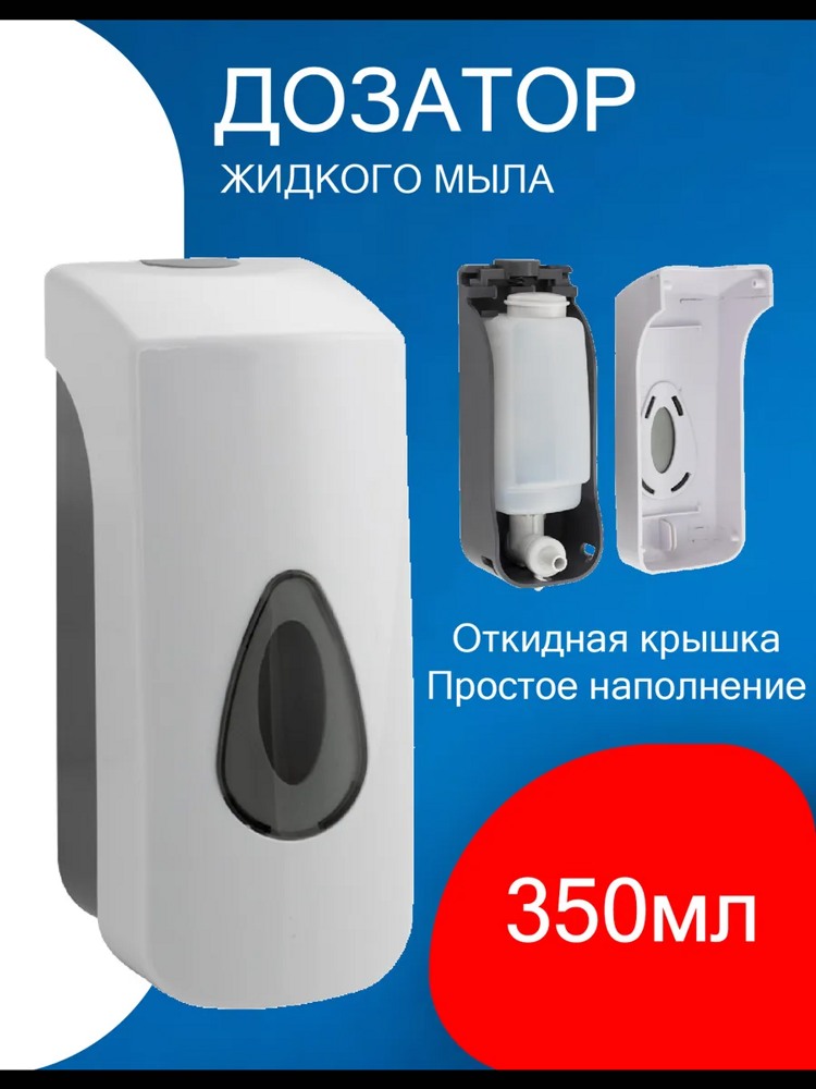 Дозатор жидкого мыла и других моющих средств, с глазком. Материал - из ASB-пластика белого цвета. Объем 350 мл. Размеры: Д 80 х Г75 х В190 мм. Производство: Китай