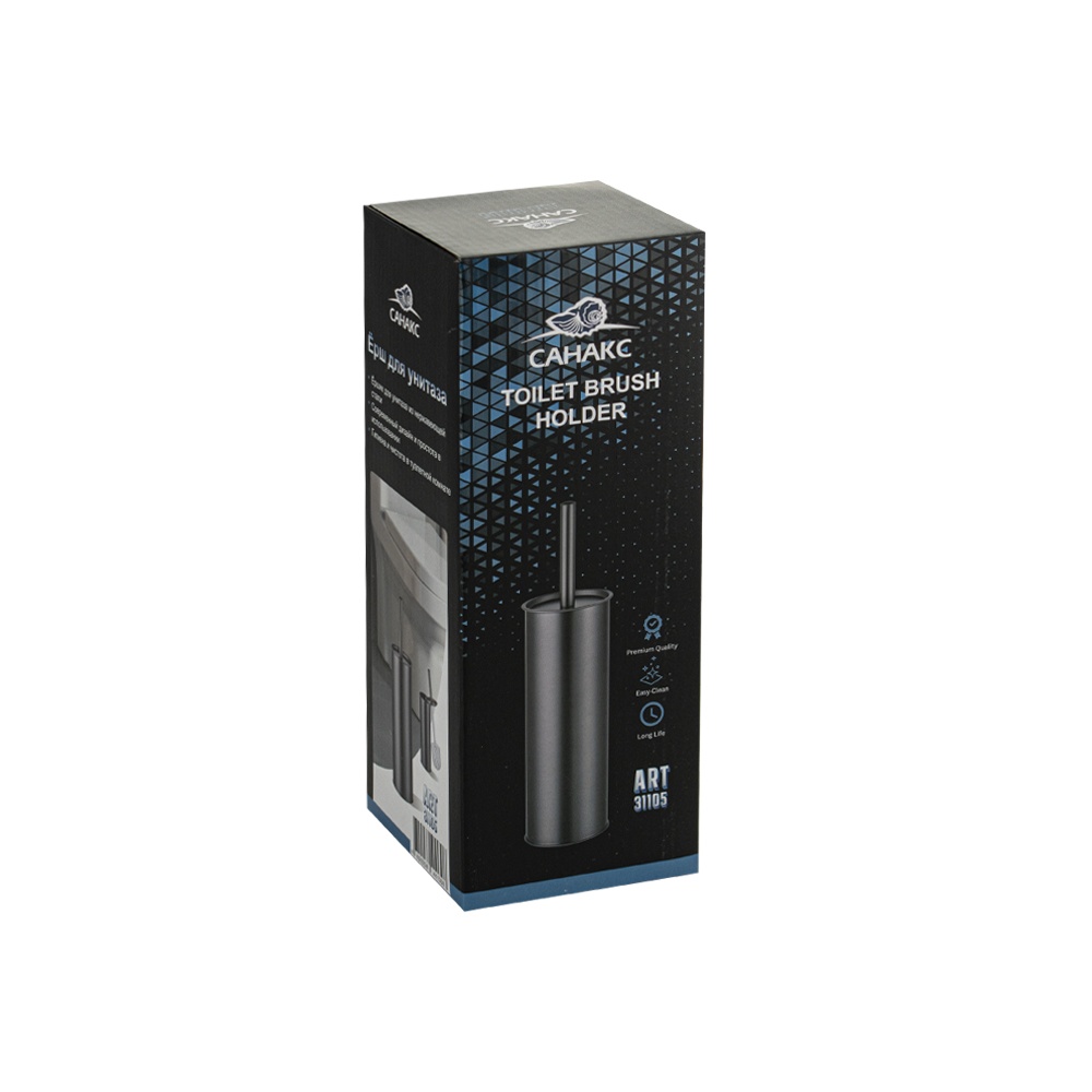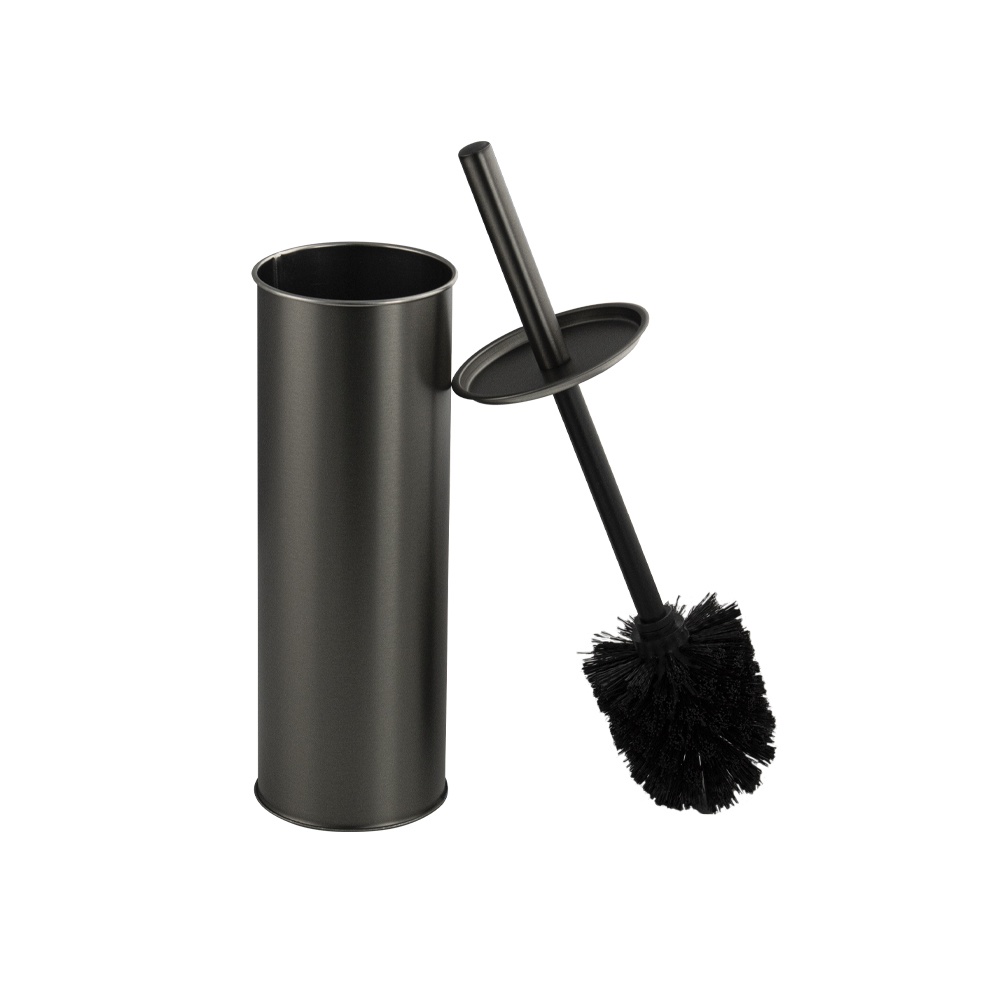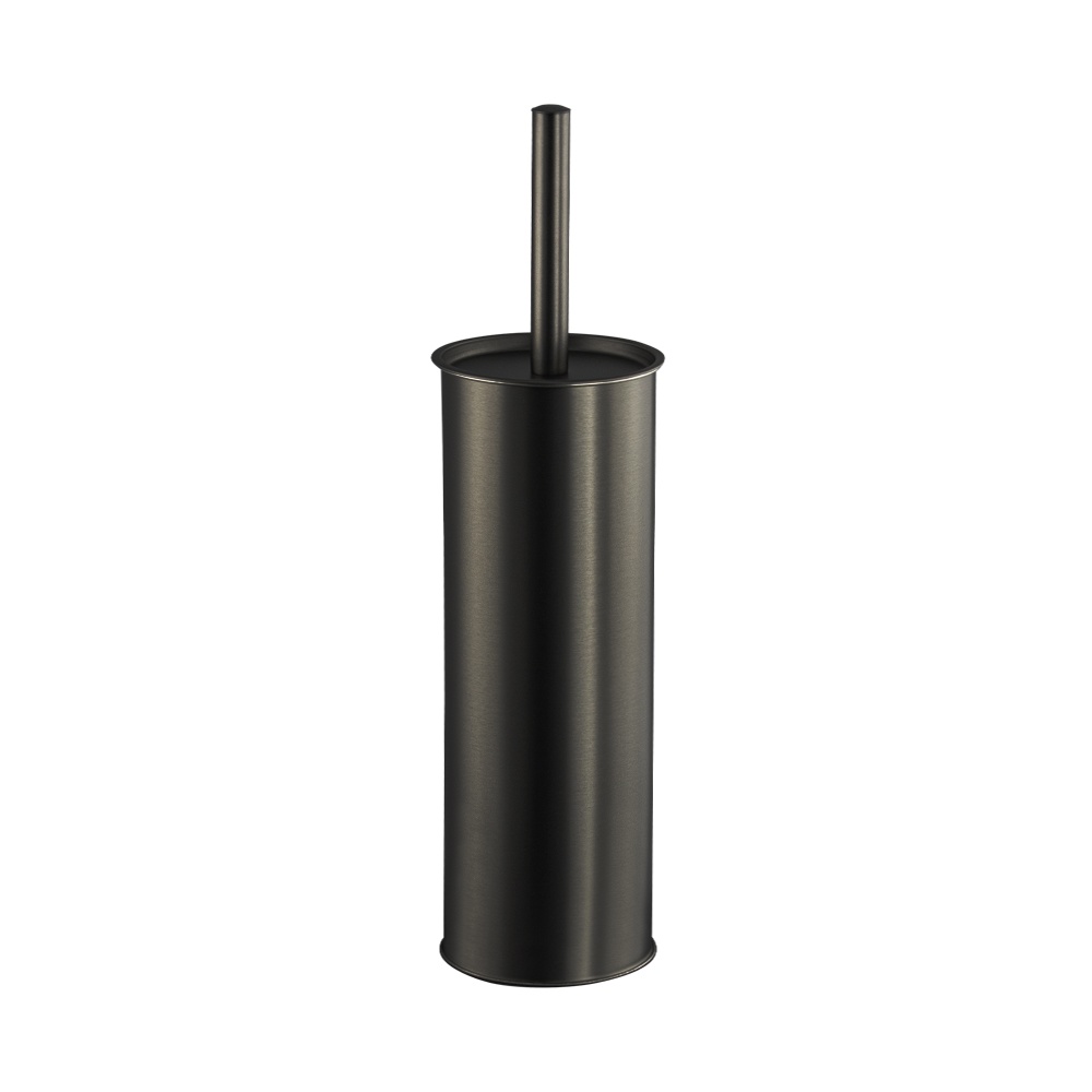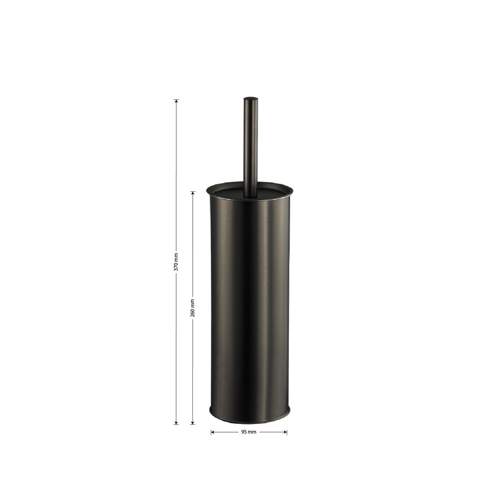 Ершик для унитаза круглый напольный с колбой цвета оружейная сталь. Материал: нержавеющая сталь марки 410. Габаритные размеры высота 375 мм, высота колбы 365 мм, диаметр 90 мм.