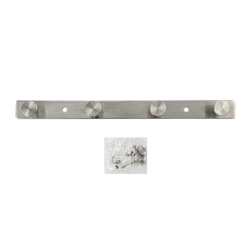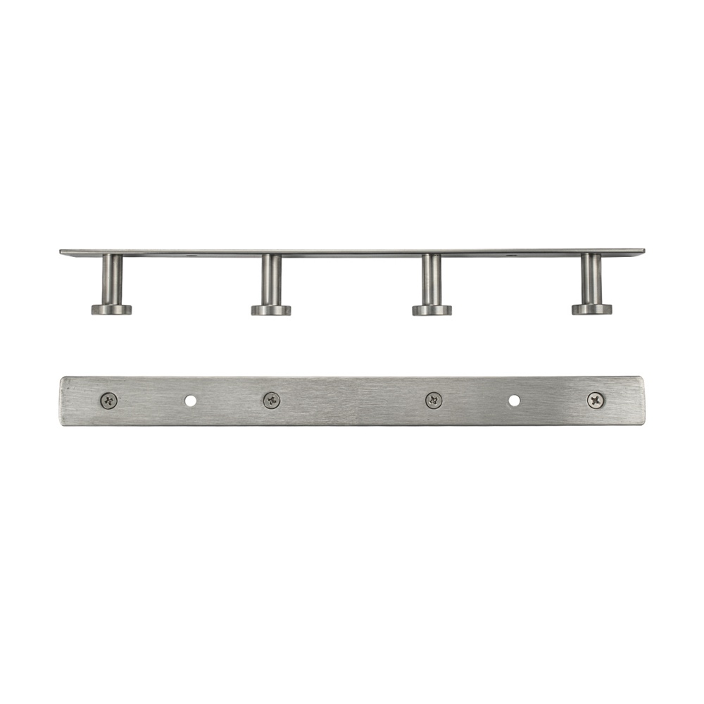 Крючок для полотенца на планке с 4-мя крючками столбиками. Материал нержавеющая сталь SUS 304, цвет сатин. Размеры 290*25*33 мм