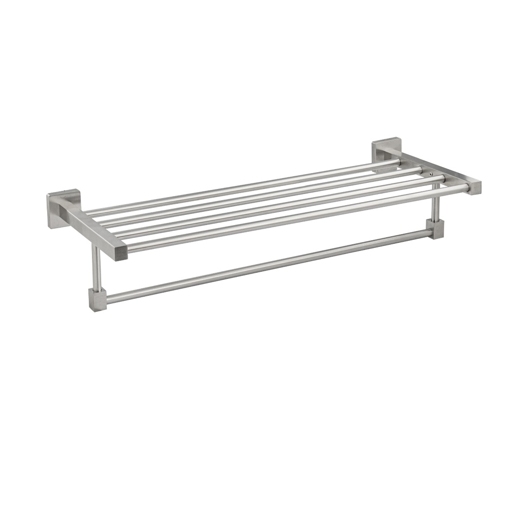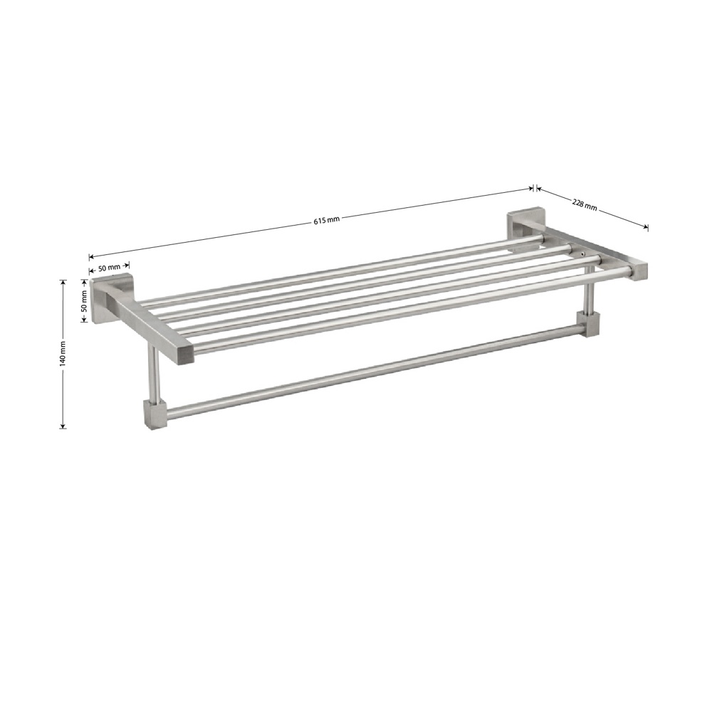 Полка для полотенца с опорой, большая, для ванной, привлекает своим современным дизайном, многофункциональностью и надежностью конструкции. Кухня, ванная, прихожая, кладовка или гардеробная - эта полка идеально подойдет везде. Металлическая полка оснащена дополнительной перекладиной. Габаритные размеры: длина 600 мм, высота 120 мм, глубина 210 мм. основание 55 мм. Производство: Китай