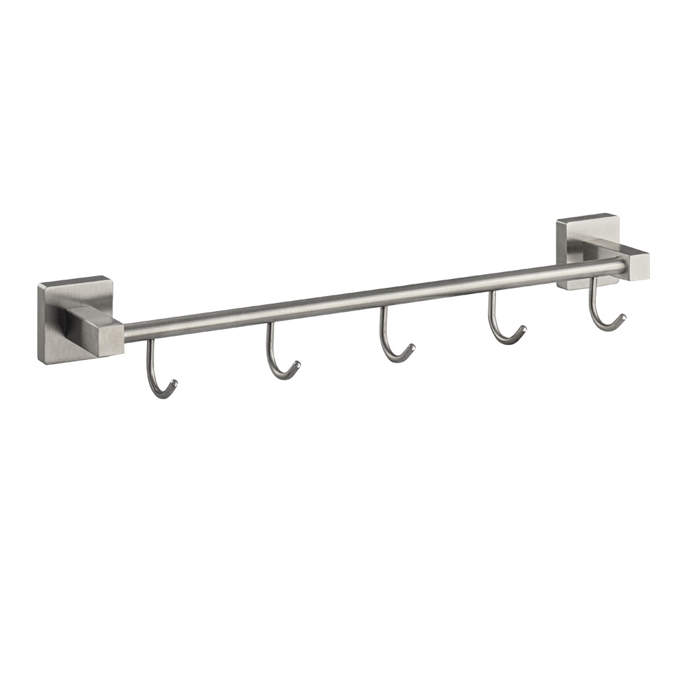 GFmark - Держатель для полотенец металлический с пятью крючками с квадратным креплением. Изготовлен из прочной нержавеющей стали марки SUS 304 с матовым покрытием. Размеры: длина 475 мм, высота 65 мм, глубина 80 мм