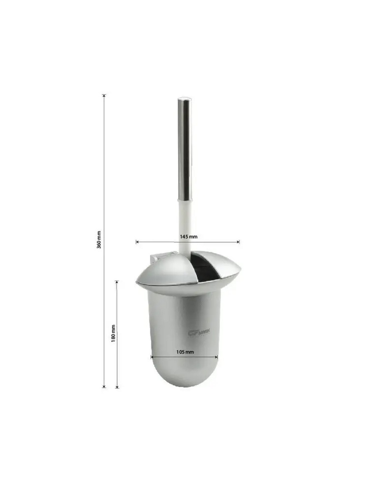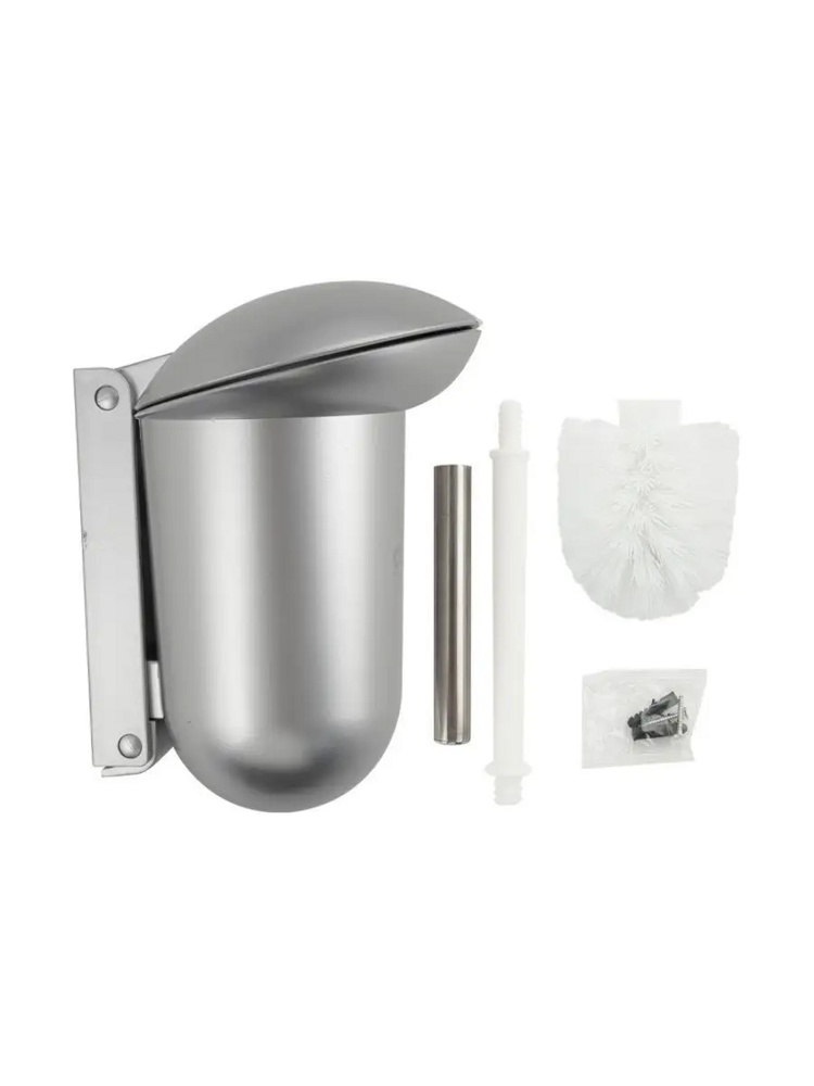 Ёрш для унитаза настенный серебро, с откидной крышкой, автомат. Материал - высокопрочный пластик АБС. Габаритные размеры: высота 360, ширина 105 мм, ширина крышки 145 мм, высота корпуса 180 мм. Производство: Китай
