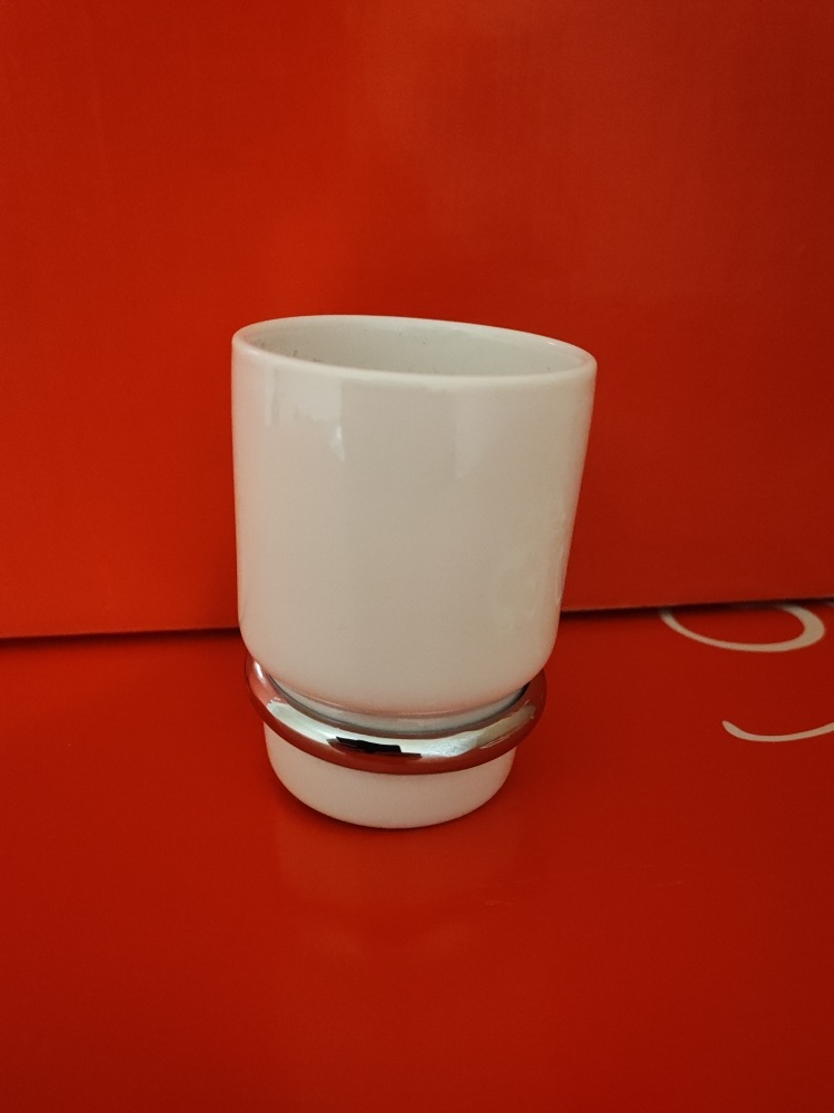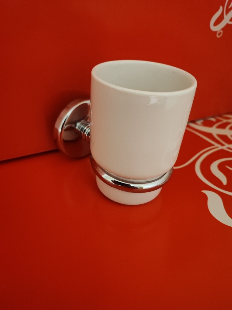 Держатель с керамическим стаканом к стене. Материал: латунь хромированная + керамика. Производство: Турция